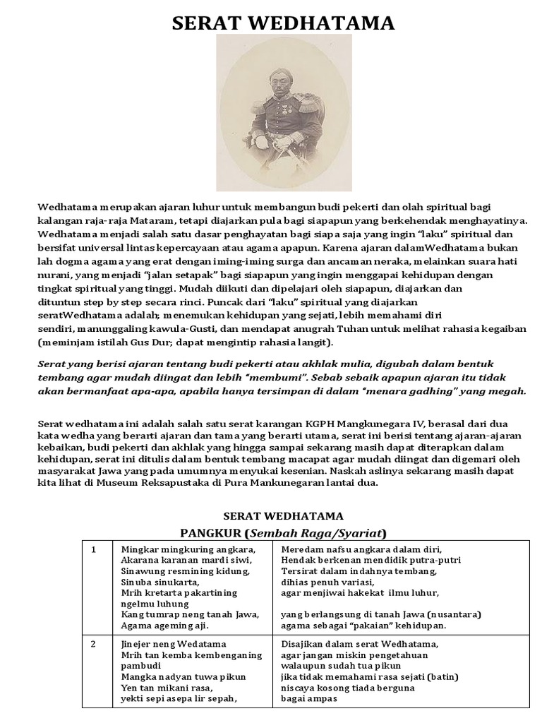 Isi Serat Wedhatama Bahasa Jawa Dan Artinya Dalam Bahasa Indonesia
